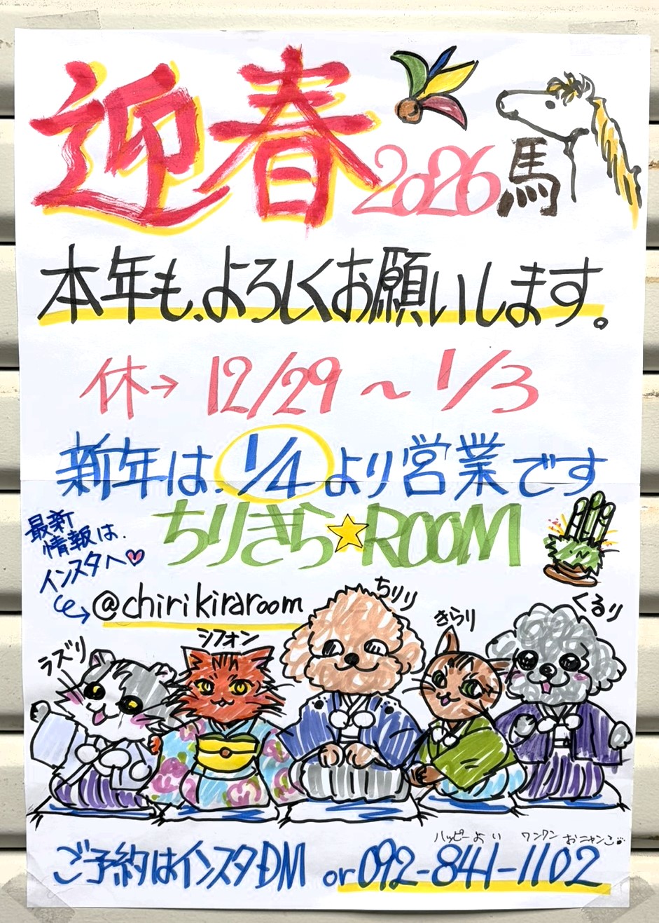 お問い合わせ、ご予約等の電話はこちらへ 092-841-1102 定休日は毎週火曜日です。 |